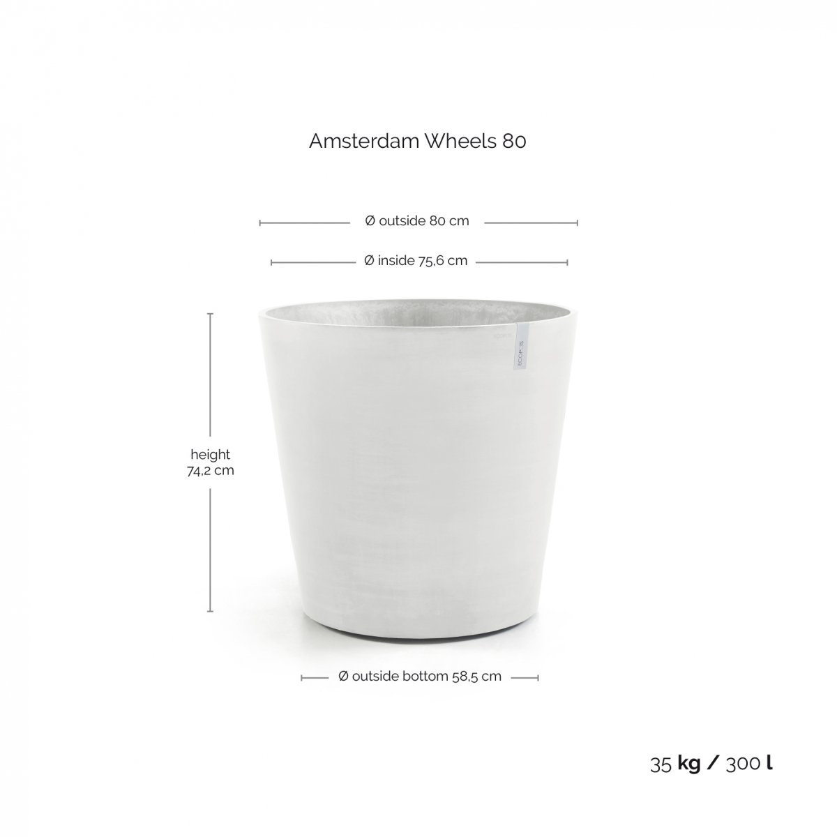 Кашпо Ecopots AMSTERDAM белое с колесами
